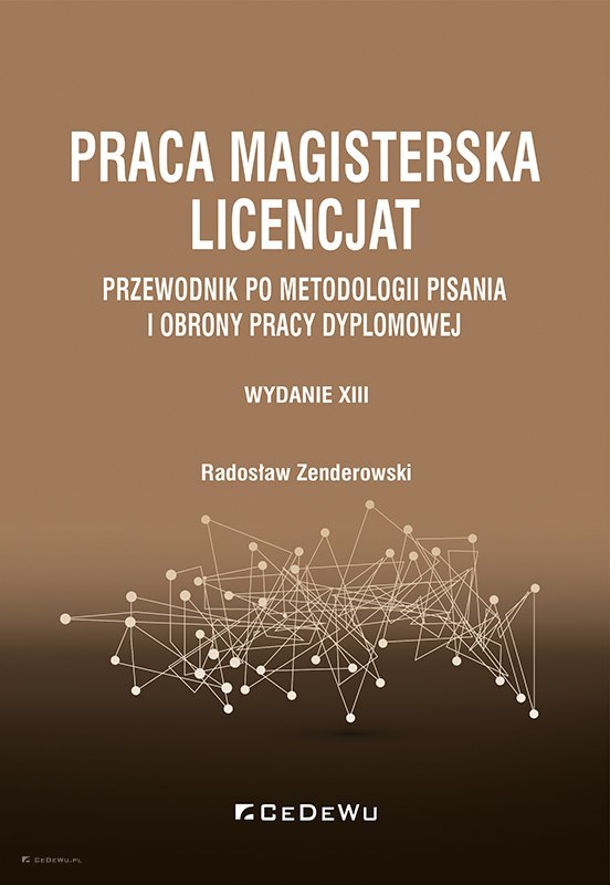 Praca magisterska, licencjat : przewodnik po metodologii pisania i obrony pracy dyplomowej / Radosław Zenderowski. - Wydanie 13. - Warszawa : CeDeWu, 2025. - 140, XVIII stron : ilustracje, wykresy ; 21 cm.